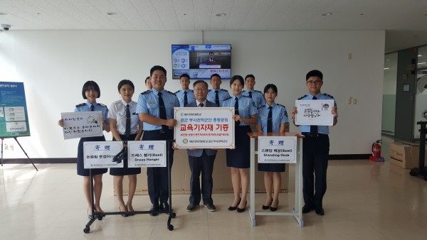 기증품으로는 후보생 학습능율 향상을 위한 스탠드책상 (8개), 옷걸이 (80개), 옷걸이 행거(8개)로
