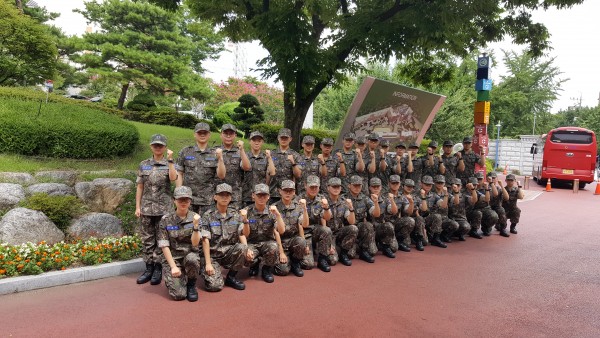 부학군 3기 예비 후보생 33명(남30, 여3)은 2017. 7. 30일 본교 정문에서 집결하여 부학군 후보생이 되기위한 기초입영교육에