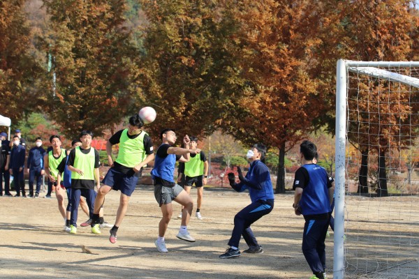 코로나 19 방역지침을 철저히 준수하여 중대별(1,2중대) 편성하여 축구, 피구, 듸지백게임,