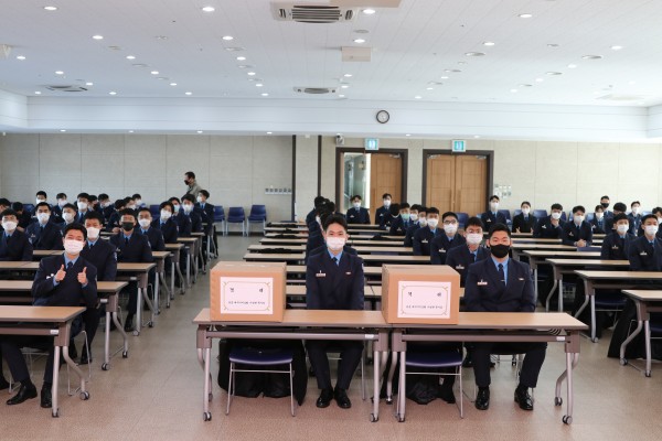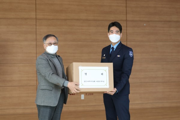 대구기지교회 나성한 목사님께서 우리학교 학군단 후보생들에게 위문품을 전달하여 격려하였다.