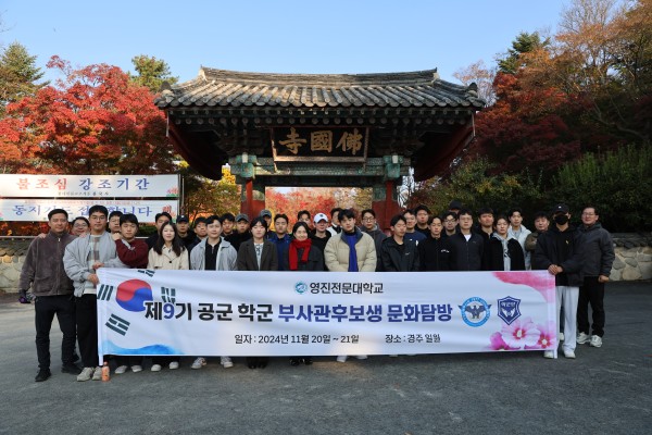 문화 탐방 24-11-21 14:21 | 조회597 | 학군단관리자 제9기 공군 학군 부사관후보생 문화탐방 - 일 자: 2024. 11. 20.(수) ~ 21.(목) 1박2일 - 장 소: 경주 일원 댓글목록 등록된 댓글이 없습니다. < 이전글 다음글 > 목록